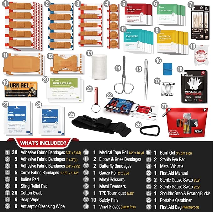 - ALWAYS READY FOR ANY EMERGENCY ▶ Leave your worries behind and cherish your every moment! This amazing first aid kit allows you to feel safe and confident 24/7! Our mission is to impress every customer with high quality first aid kits and provide the best services. If you have any question, please contact us directly and trust that we will do it right.