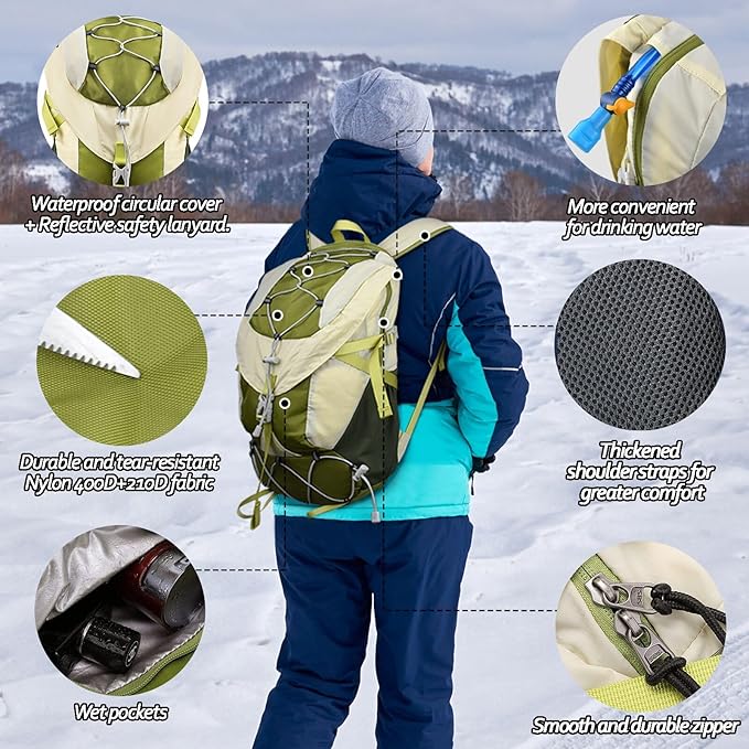 - Lightweight & Waterproof Daypack: This professional-grade waterproof hiking day pack combines waterproof fabric with advanced water-repellent treatment. Its innovative buckle-sealed rain cover effectively prevents moisture ingress, keeping electronics, clothing, and supplies dry. Combining lightweight (weighing only 350g) with excellent durability.