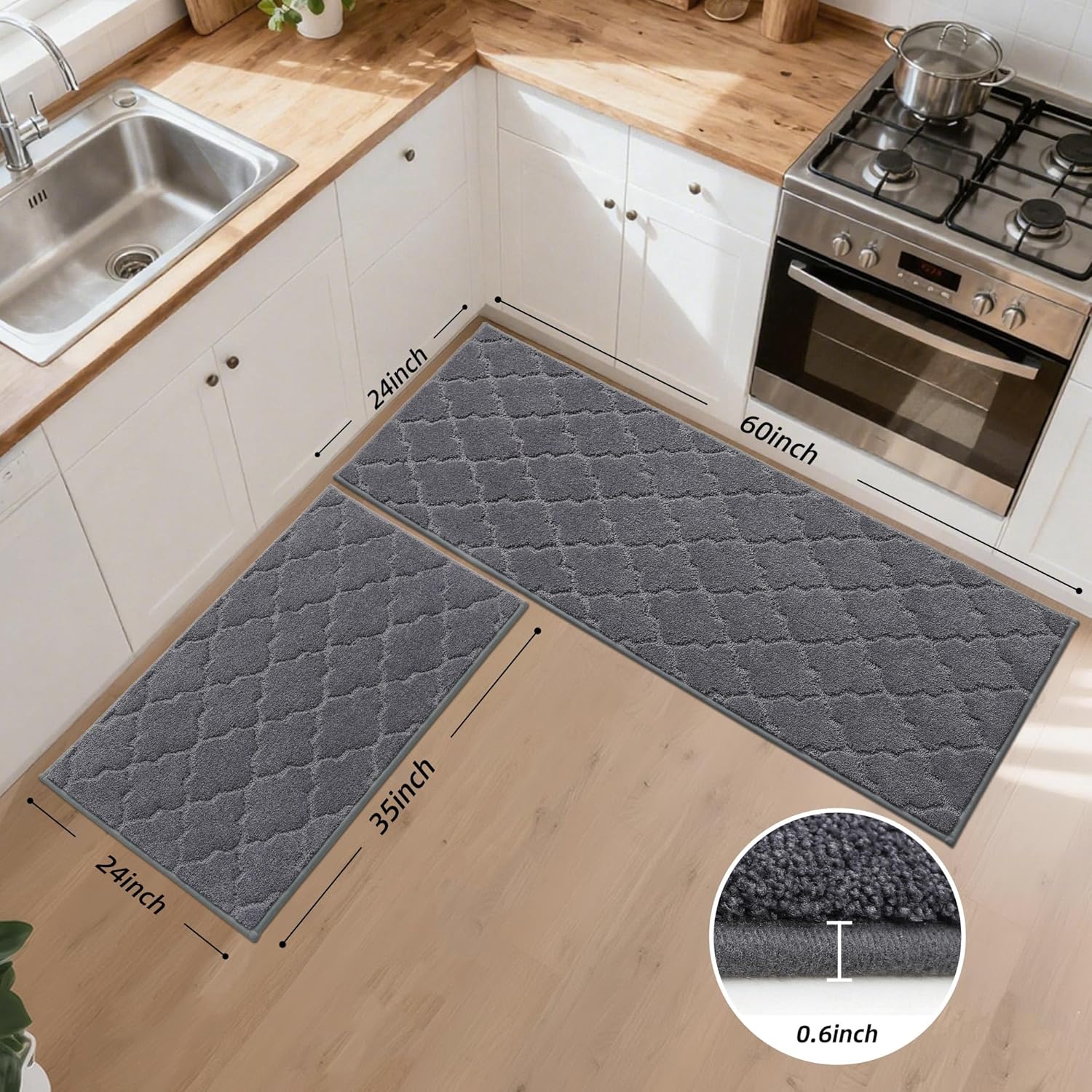 JSEI Kitchen Rugs, Non-Slip Kitchen Mats for Floor, Soft Washable Absorbent Kitchen Mats 2 Pieces, Kitchen Carpet Runner with TPR Backing, Polyester, 24”x36”+24”x60”, Dark Grey