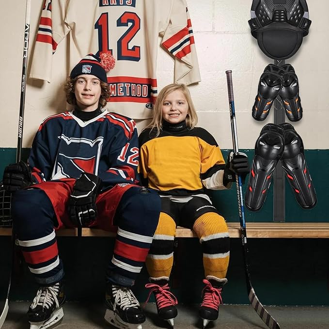 - 【No Need Set Up】Hockey Gear Organizer with 5 Hooks.They're designed to slide up and down.No matter the size of your device, you can loose hooks to extend the distance between them to suit your needs. You can also change the hook orientation to left or right.The perfect travel companion for athletes and outdoor enthusiasts.