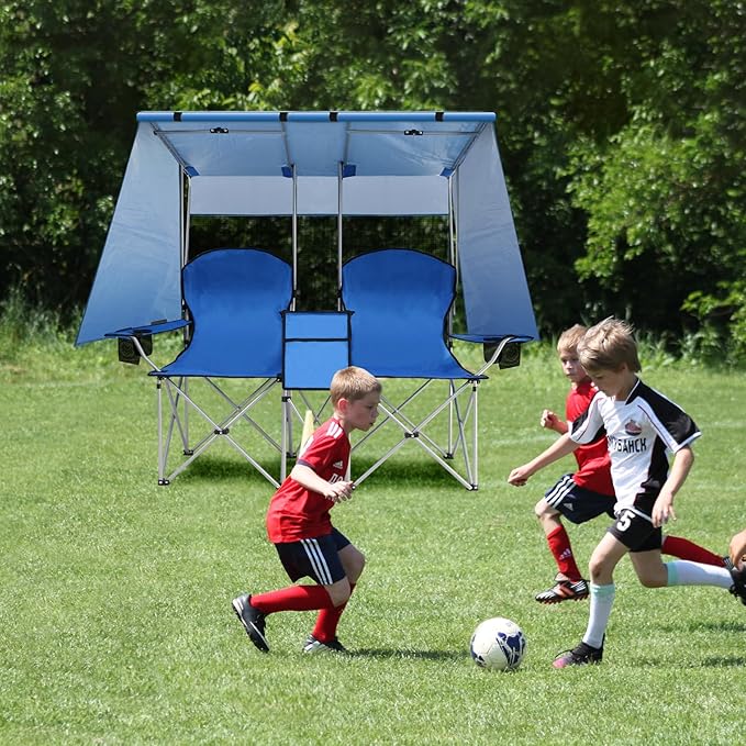 ptlsy Double Camping Chair with Canopy, Folding Two-Person Seat, Portable Outdoor Loveseat with Shade, Folding Chairs for Beach, Lawn, and Outdoor Activities (Blue)