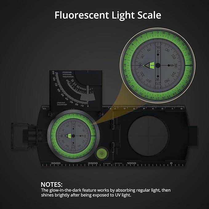 - Military Compass with Inclinometer and Graduated Scale: Anbte professional compass is made of high quality zinc alloy metal body, military construction, waterproof and shockproof. Can be used in extreme weather. Built-in inclinometer and side with scale, can measure the slope and height