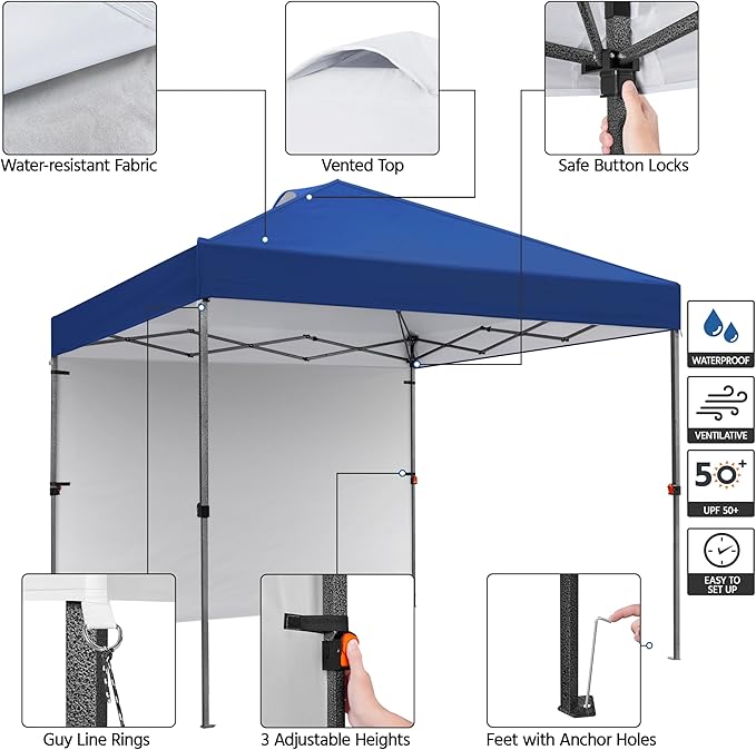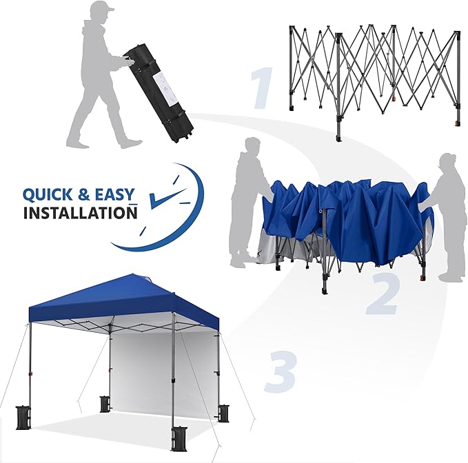 - Additional Sidewall for More Protection: The sidewall of this instant outdoor canopy is coated with UPF 50+ UV protection to shield you from the sun. It also offers extra wind protection and privacy