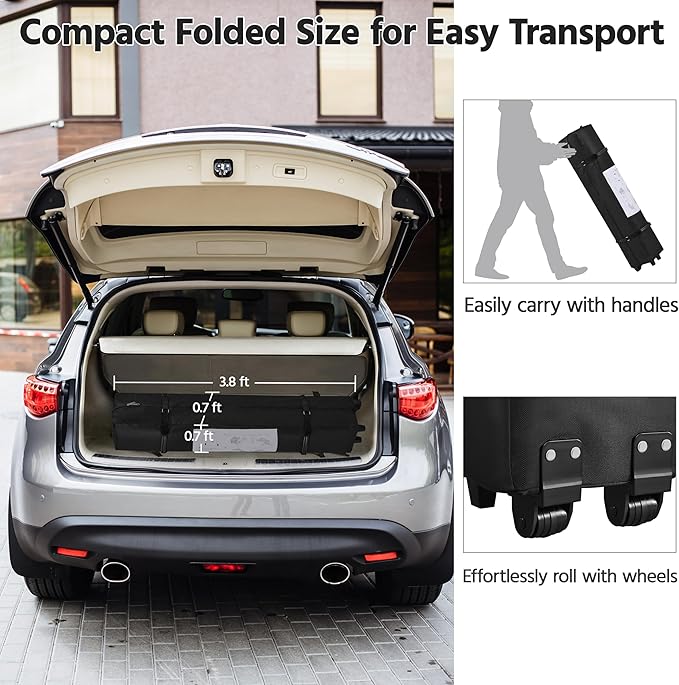- Convenient Mobility & Storage: Offering 100 sq. ft. of shade, this 10×10 ft pop-up canopy folds down to a compact size for easy storage in your trunk or garage. The included roller bag ensures hassle-free portability, making transport a breeze