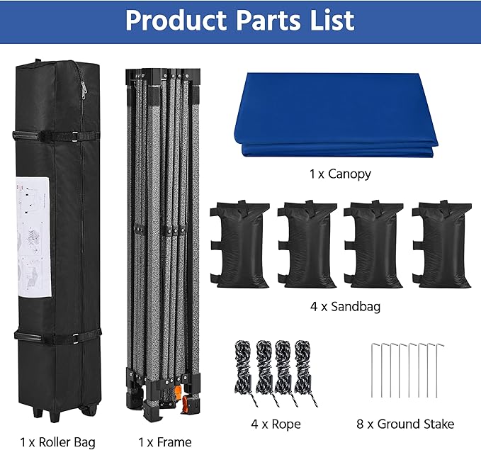 - Weather-Resistant Durability: Crafted with durable polyester canopy fabric featuring a UPF 50+ silver coating, this instant canopy offers reliable protection from the elements. The sturdy metal frame and polycarbonate plastic parts ensure durability