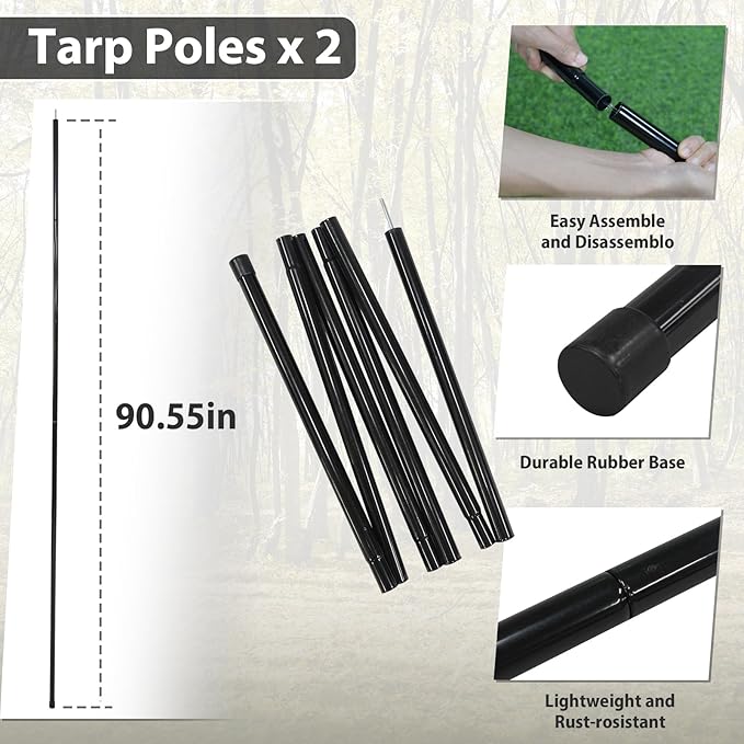 - Hammock-Compatible: Designed with hammock users in mind, the camping tarp with net features zipper sliders on each door for easy access and compatibility with hammocks tied between trees. Enjoy a bug-free lounging experience like never before
