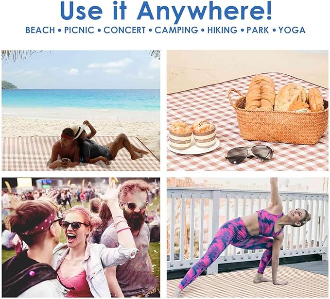 - MULTIFUNCTIONAL: This portable outdoor blanket can be used as a beach mat, camping blanket, family mat, RV blanket, emergency blanket. Not just outdoor blanket, it also serves as floor mat, kids playing mat, pet seat cover, a great item for every family
