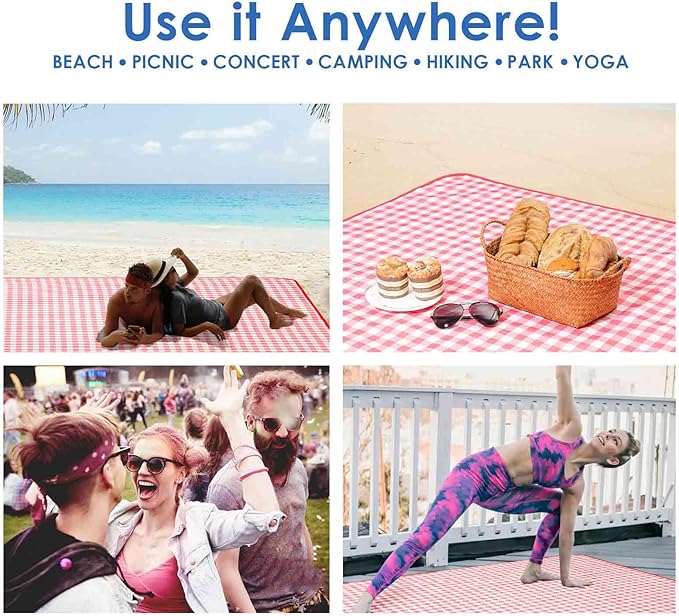 - MULTIFUNCTIONAL: This portable outdoor blanket can be used as a beach mat, camping blanket, family mat, RV blanket, emergency blanket. Not just outdoor blanket, it also serves as floor mat, kids playing mat, pet seat cover, a great item for every family
