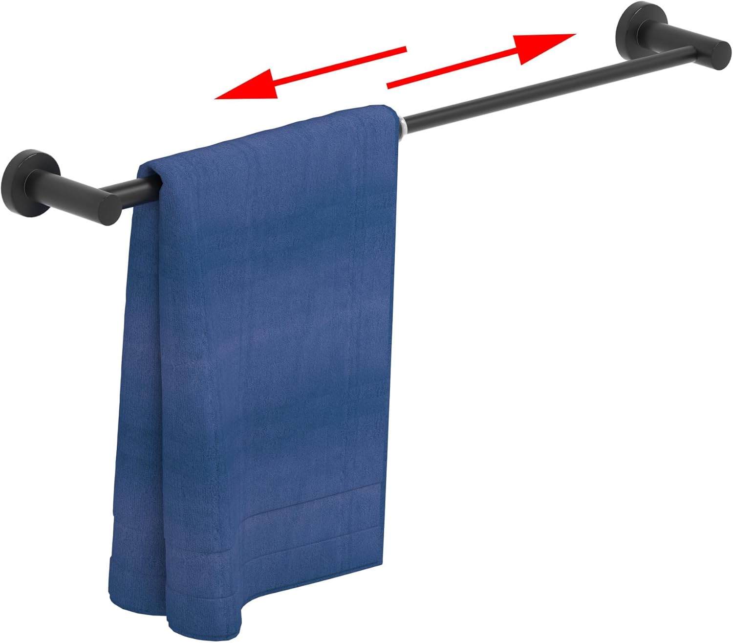 - Adjustable Size: Our Stainless Steel Towel Bar allows for easy length adjustment, with the outer diameter ranging from 13 to 23 inches and the effective towel-hanging length spanning 12 to 22 inches. This versatile design makes it suitable for various space sizes, perfectly fitting any bathroom—whether compact or spacious—while optimizing towel-hanging capacity.