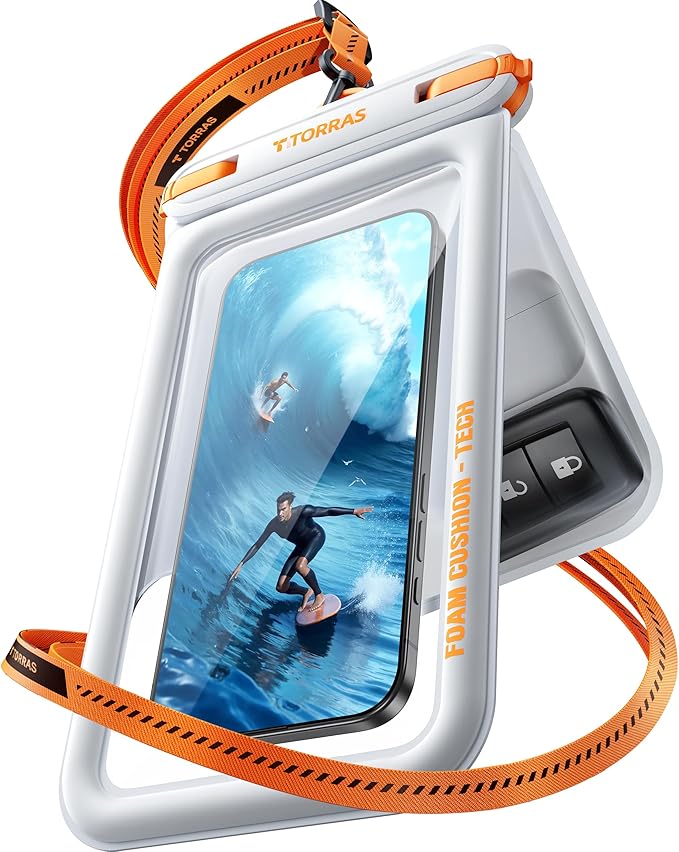 - Safe Floating, Adjustable Lanyard: Features an exclusive "FOAM CUSHION-TECH" floating layer, which provides an amazing buoyancy of up to 500g, improves by 80% compared to others. Even if your phone accidentally drops into the water, it will quickly float up, allowing you to easily locate and retrieve it. Plus, it has an adjustable and eye-catching lanyard, which is comfortable to wear around your neck. Ideal for beach vacations, swimming, kayaking, cruise trips, and various outdoor activities