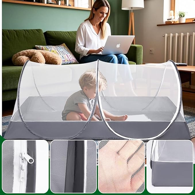 - Zipper Closure:Double zipper closure design,easy for you to enter and exit freely.Black mesh net with waterproof fabric Top &bottom,can provide better protection when used in room or outdoor.