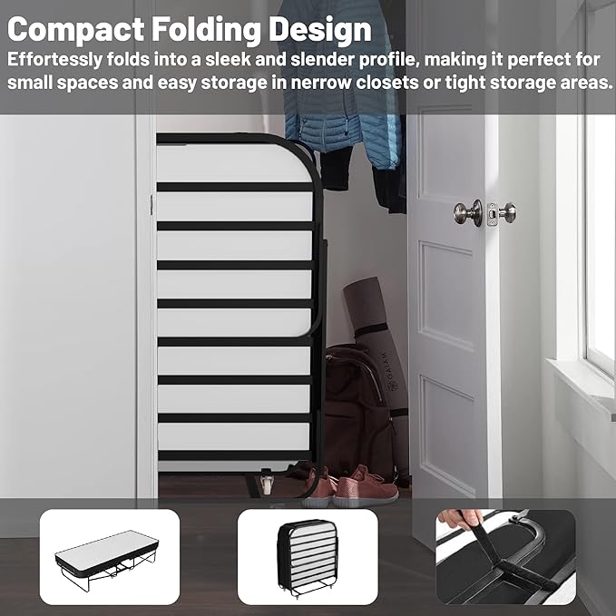 Greaton, 16-Inch Rollaway Folding Cot Bed with 5" Memory Foam Mattresses, Sturdy Metal Folding Frame, Fully Assembled, Great for Adults and Kids, 30-Inch, White