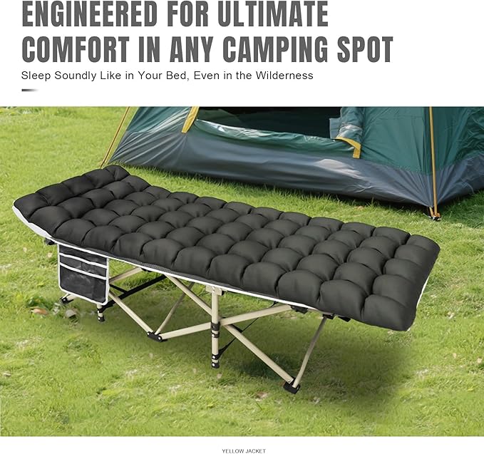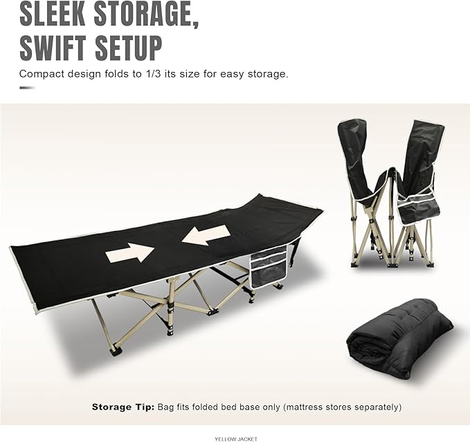 YELLOW JACKET Camping Cot with Mattress for Adults, Folding Sleeping Cot 600lbs Max Load, Portable Camping Cot with Carry Bag, 28" Wide Cot for Camping, Home,Office,Travel (Black)