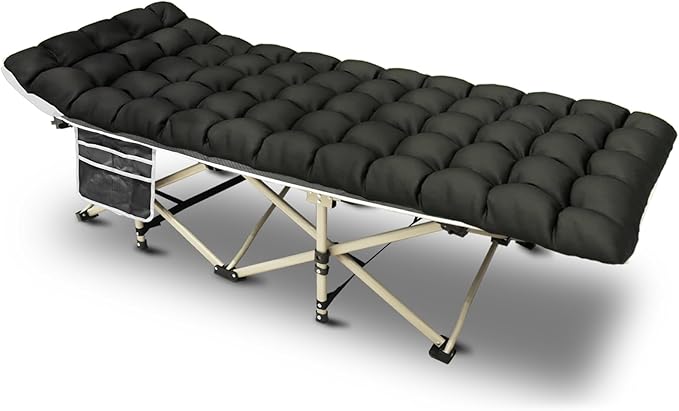 - Versatile cot camping with Storage: This folding cot bed features a large side pocket for phones, glasses, and essentials. Perfect for families and outdoor use, it's ideal for Camping, beach trips, Office naps, patio lounging, Road trips, travel. The compact foldable design with storage makes relaxation convenient anywhere.