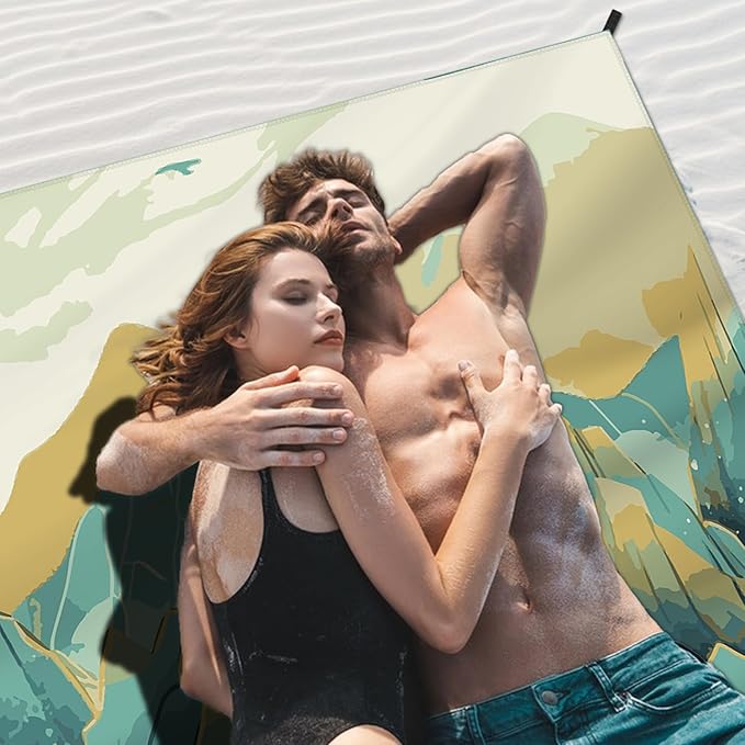 Beach Blanket Waterproof Sandproof Large Beach Mat 79" X 83" for 2-4 Adults Sand Free Mat Quick Drying,Lightweight & Durable with 4 Stakes & 4 Corner Pockets for Beach Travel Camping.(Mountain)