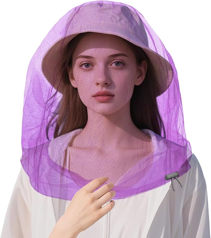 Oversized Mosquito Net 42 x 25 Inches Ultra Large Mosquito Head Net Face Neck Fly Mesh Netting Fits All Hats for Outdoor Camping Hiking Fishing Gardening Safari(Purple)
