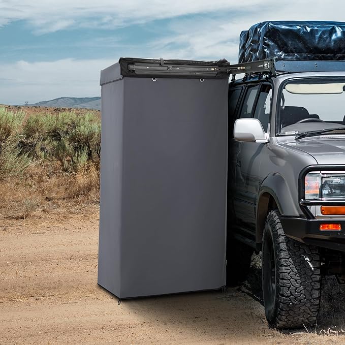 SanHima Awning Shower Tent with 90° Swning Arm - Car Side Shower Room w/LED Light, Camping Waterproof Portable Privacy Shelter Bathroom Overland, Gray