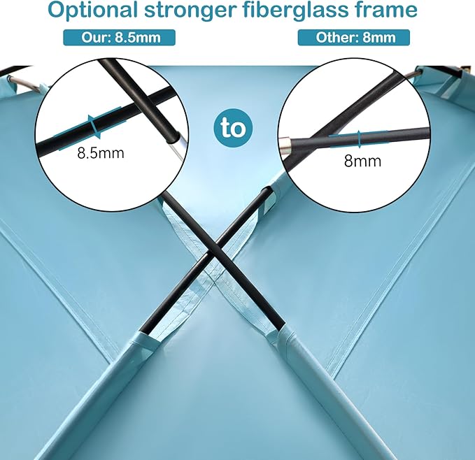- Strong Construction and Reliable Protection: Equipped with 3 sturdy fiberglass poles that provide excellent support and stability, ensuring that the tent remains stable even in windy weather. Equipped with 4 wind ropes and 8 sturdy ground pegs, the tent can be securely fastened to the sand or soil, providing reliable protection from the wind and keeping you safe and comfortable when you are outdoors.