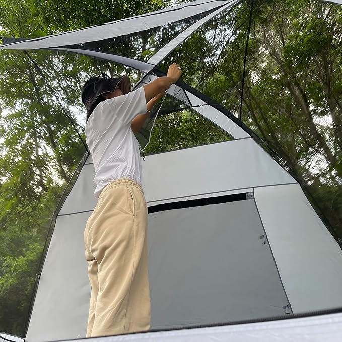 • 🐻 Quick Setup, Beginner-Friendly Design: From setting up the inner tent to securing the outer tent, only 9 steps are required. The main poles and connection buckles feature color-coding to avoid installation confusion. Includes 28 ground stakes and 14 wind ropes to reinforce the stability of the corners and sides. Even beginners can set it up in 15 minutes, saving time to focus on enjoying outdoor activities