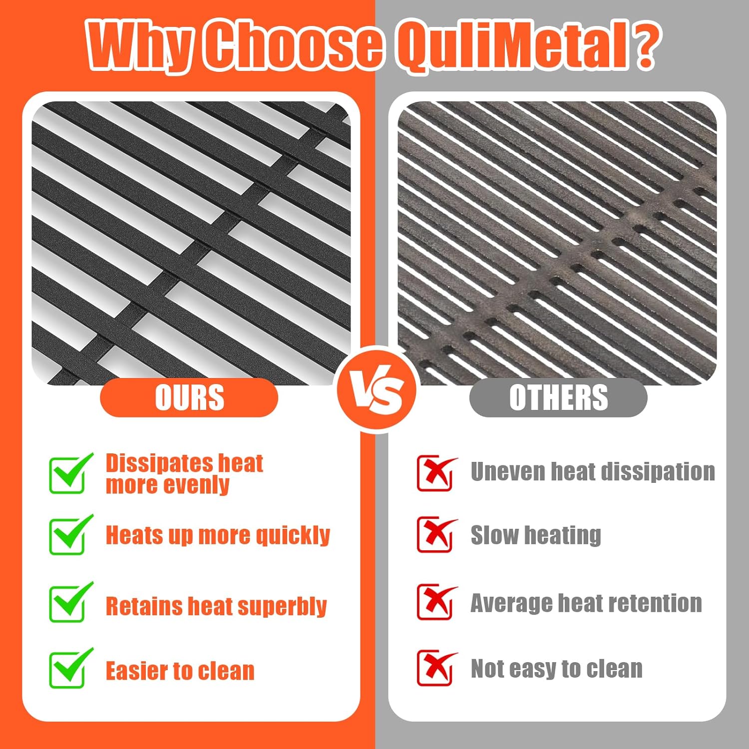 - 🔥【SUPER HEAT PRESERVATION】 Cast iron grills are hotter than porcelain grills, have better grilling effects, and bake more evenly. The unique material properties enable cast iron grills to quickly form a high-temperature environment, leaving a clear mark on the surface of food! The perfect combination of cast iron grills + porcelain steel flavorizer bar provides cooks with a better temperature control experience and professional-grade grilling effects