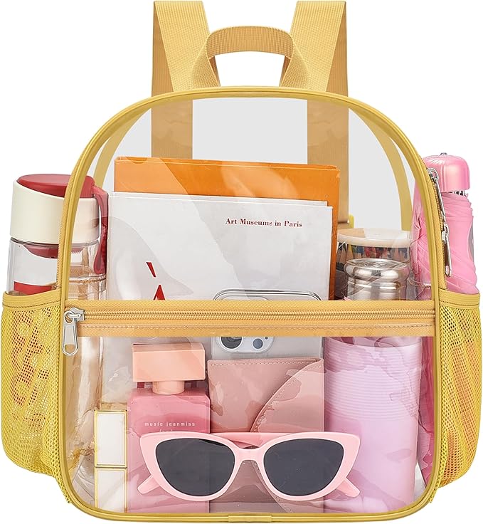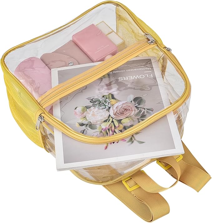 Oraben Clear Backpack for Stadium Events Clear Stadium Backpack 12x6x12 Bag (Nylon Shoulder Straps, Gold)