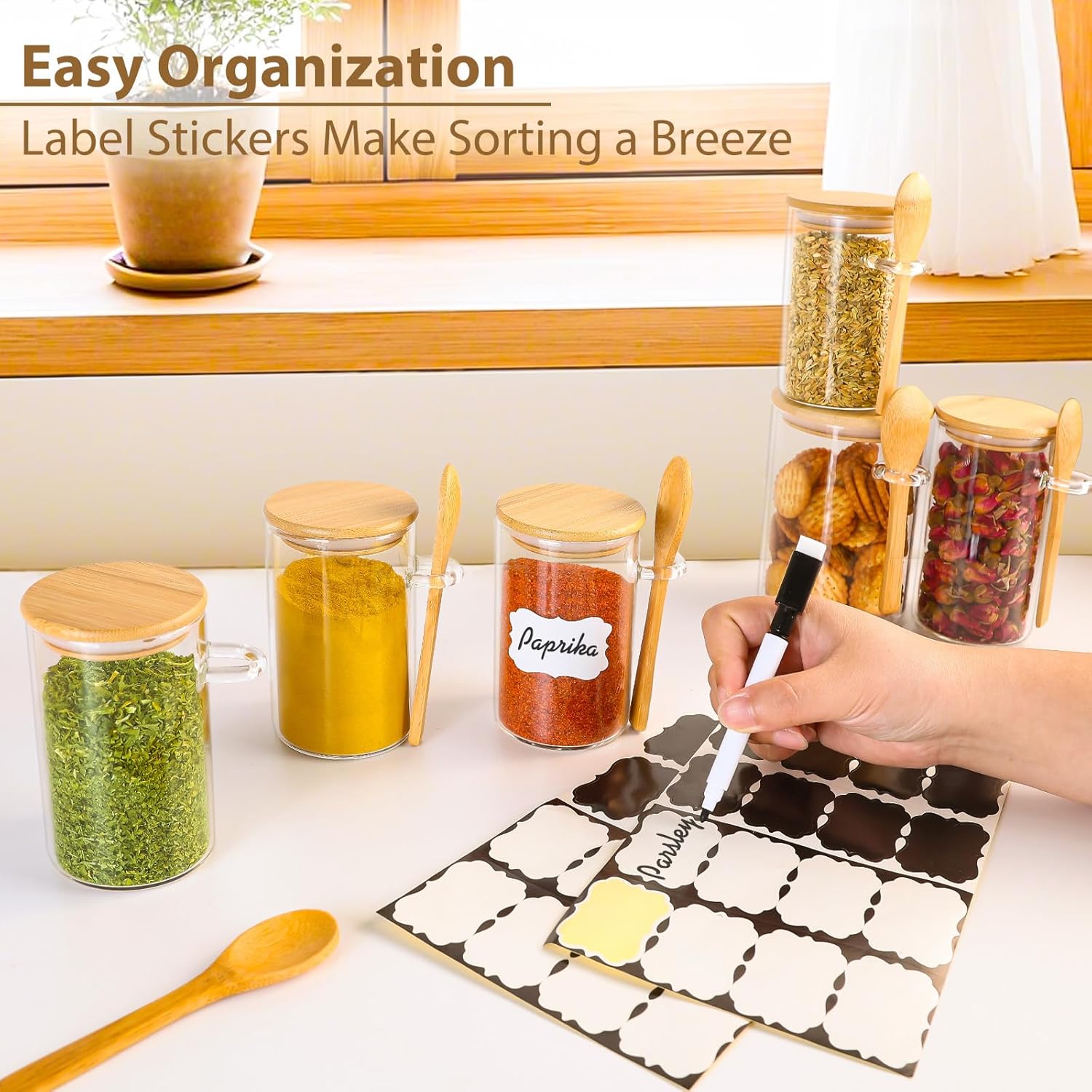 - Safe and Durable Materials: Made from high-quality, thickened glass, BPA-free and food-safe. These jars are odor-resistant and easy to clean (hand wash recommended). A long-lasting and eco-friendly option for spice storage.