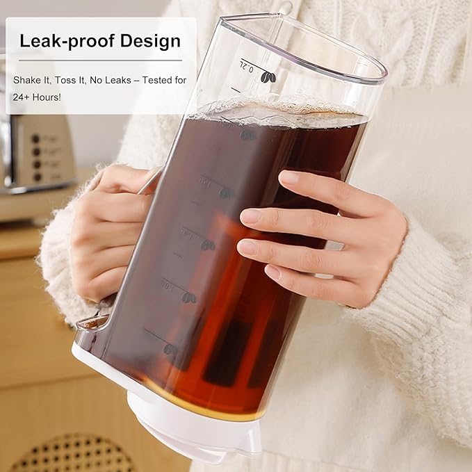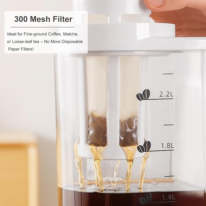 - Fine-mesh Filter & Quick Cleanup: The 300-mesh ultra-fine filter traps coffee grounds, delivering silky-smooth cold brew. The detachable filter and wide mouth fit your hand in – rinse clean in 10 seconds!