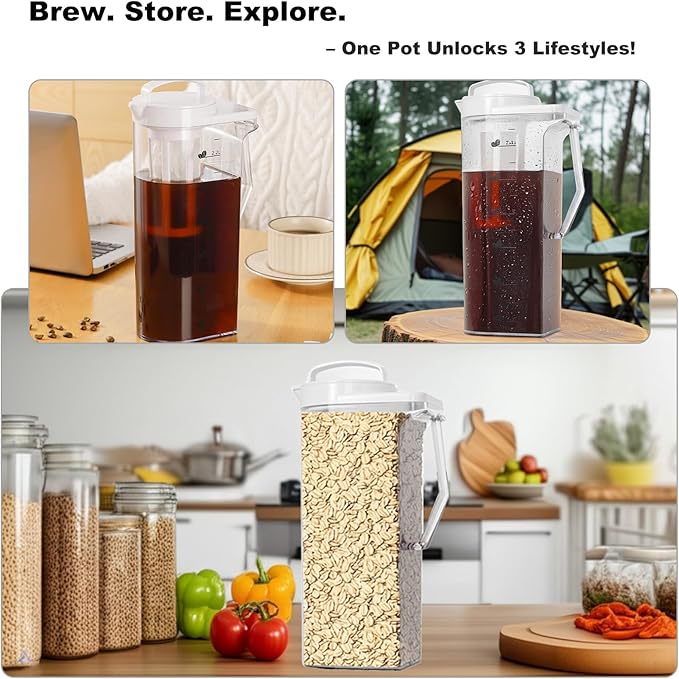 - Multi-Use Kitchen & Pantry Organizer: Not just a coffee maker! The transparent body tracks contents, while the leakproof seal locks freshness for dry goods (pasta, trail mix) or liquids (juice, infused water).