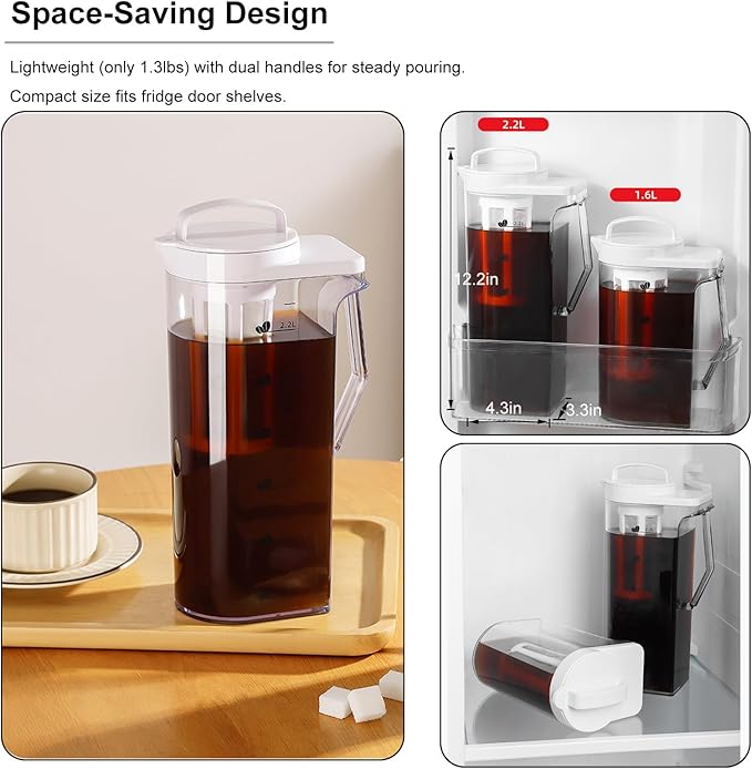 - Portable Design for Outdoors: Lightweight (only 1.3lbs) with dual handles for steady pouring. Fits in fridge door shelves (4.3”x3.3”x12.2”) and backpack. Take it camping, picnics, or road trips – no spills on the go!