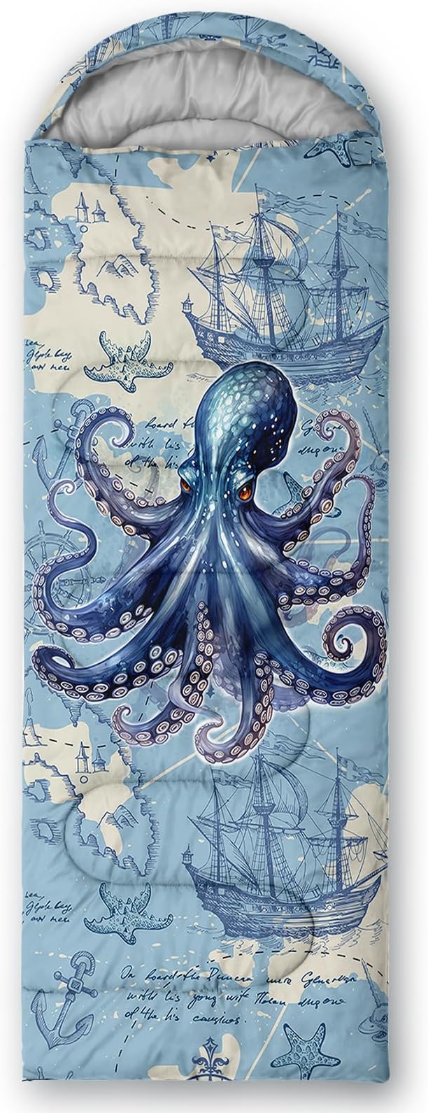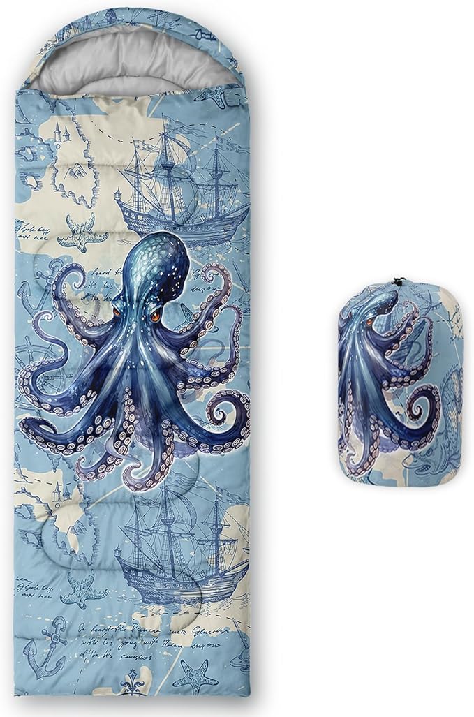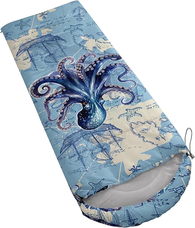 - Easy To Clean: This Octopus print camping sleeping bag can be hand wiped or machine washed, versatile and easy to clean, versatile and convenient, comes with a Carrying Bag for easy portability