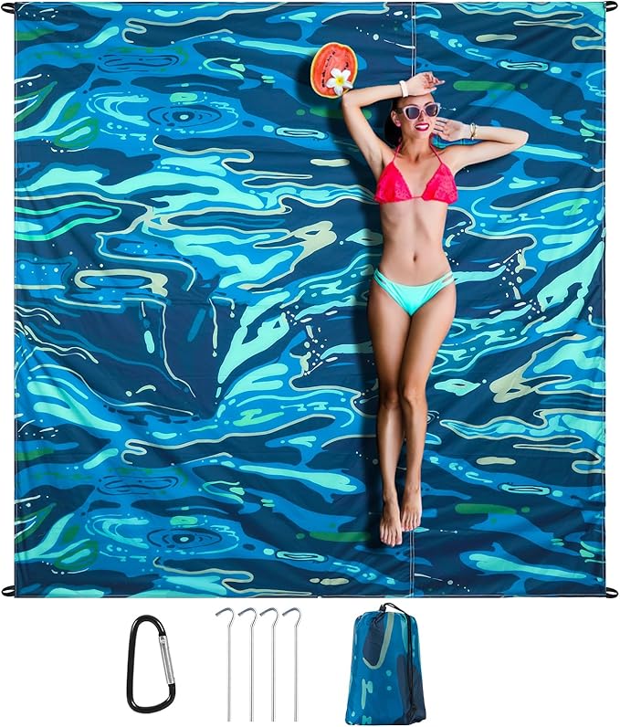 - Ultra-Large Family-Friendly Design:Our 82" X 82" beach blanket offers ample space for up to1-4 adults to lounge comfortably. Lightweight at 0.9lb, it's easy to carry while providing a generous area for sunbathing, picnics, or kids' playtime.