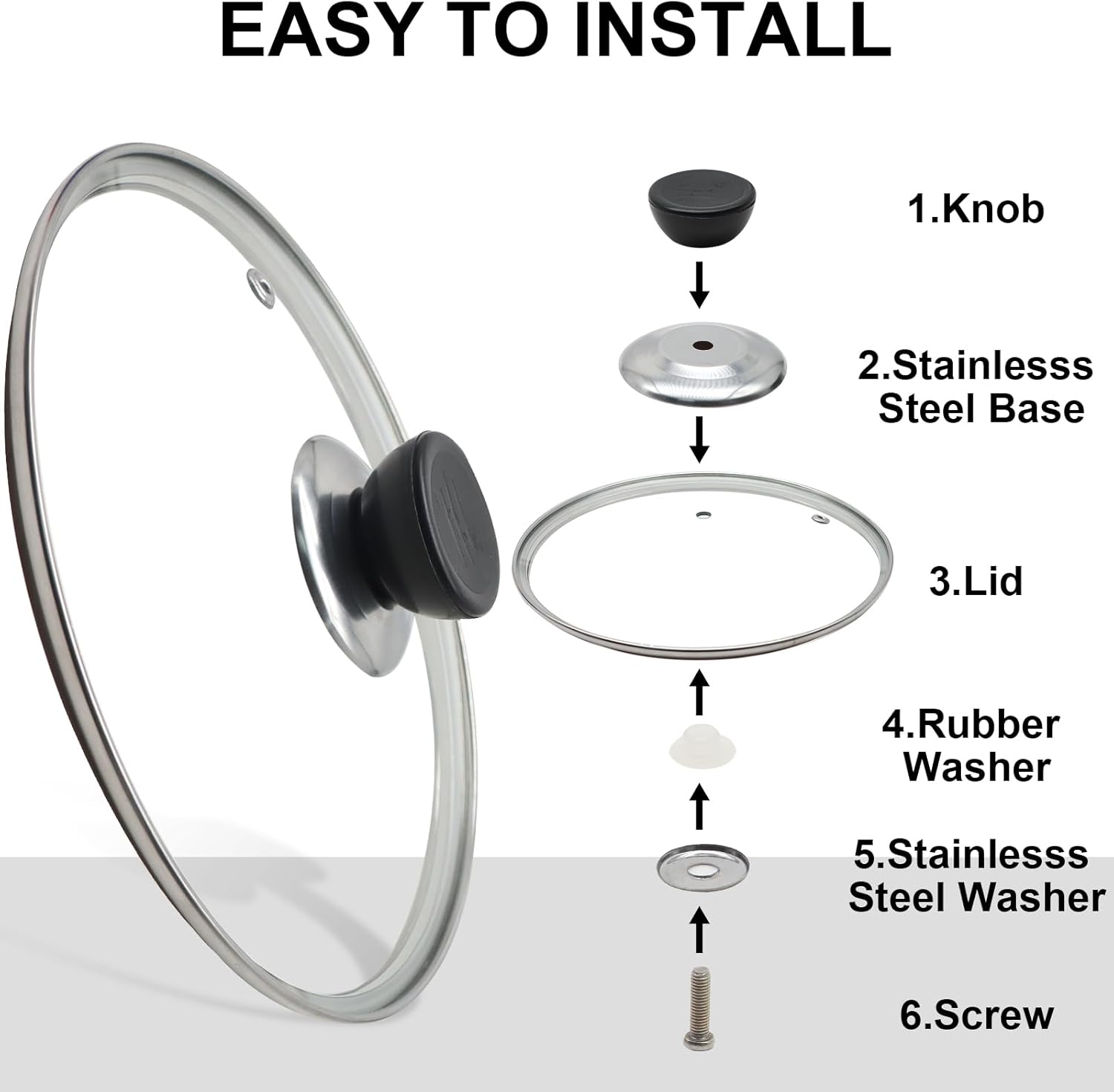 - 【Premium Tempered Glass for Clear Visibility】Crafted from durable tempered glass, this Pan Lid offers superior visibility while cooking, allowing you to monitor food without lifting the lid. The shatter-resistant design ensures long-term use, while the sleek finish resists stains and odors for a cleaner kitchen experience.