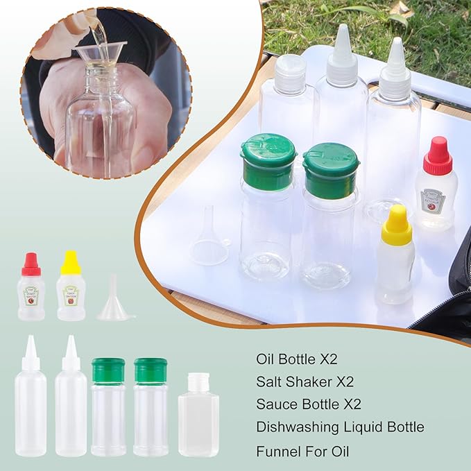 - [Pro - Level Spice Kit] The leak - proof camping spice kit (including oil, salt, ketchup, soap) fits any camp kitchen station. You can master outdoor cooking and elevate picnic essentials with precise condiment control.
