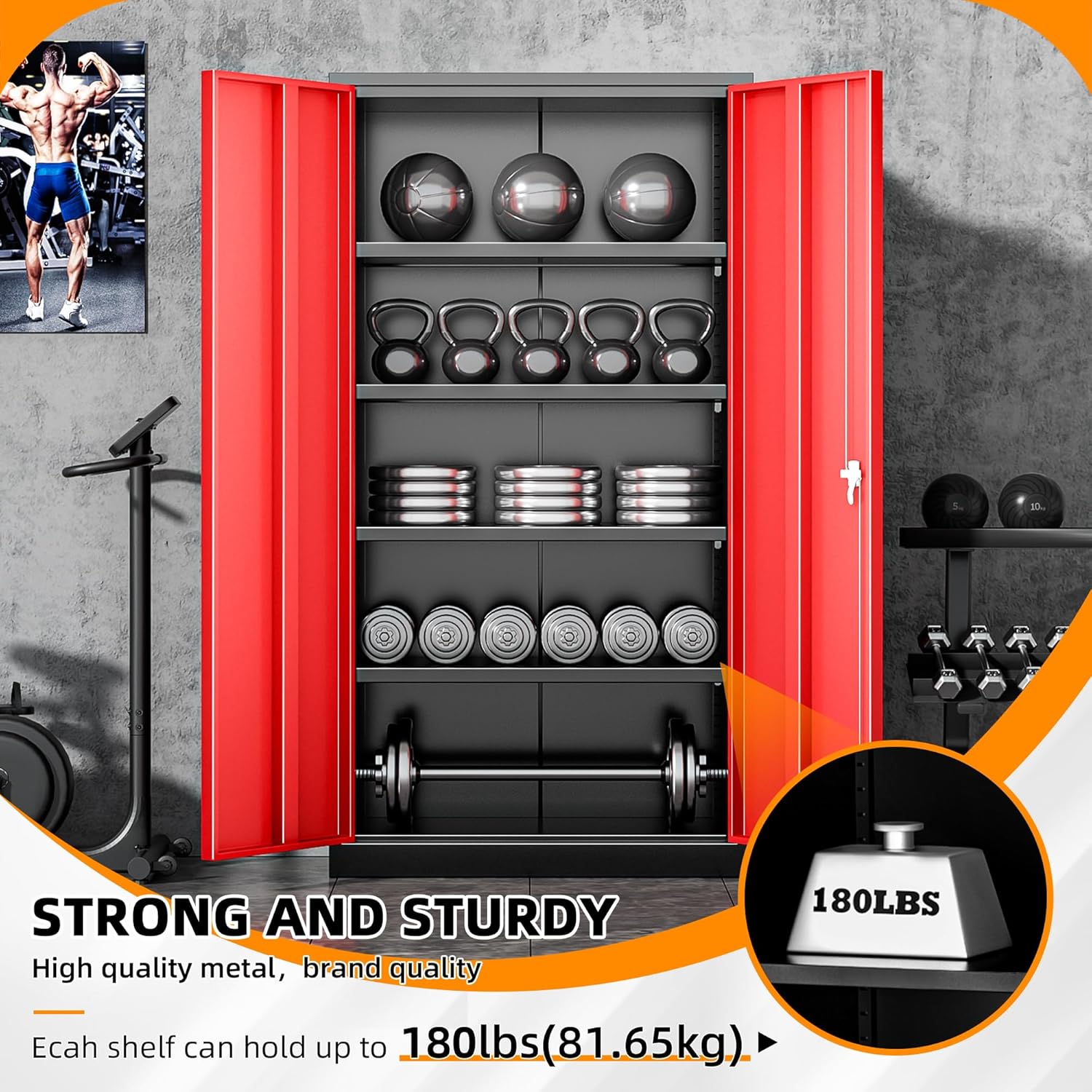 - 【High Security】: Tall steel storage cabinet with 2 door and 4 adjustable shelves to accommodate items of all sizes.The locking file cabinet with 2 Locking keys and 4-pointed locking system can highly secure your belongings.Whether you want to store office files, garage tools, or other large and heavy items, it's no problem.