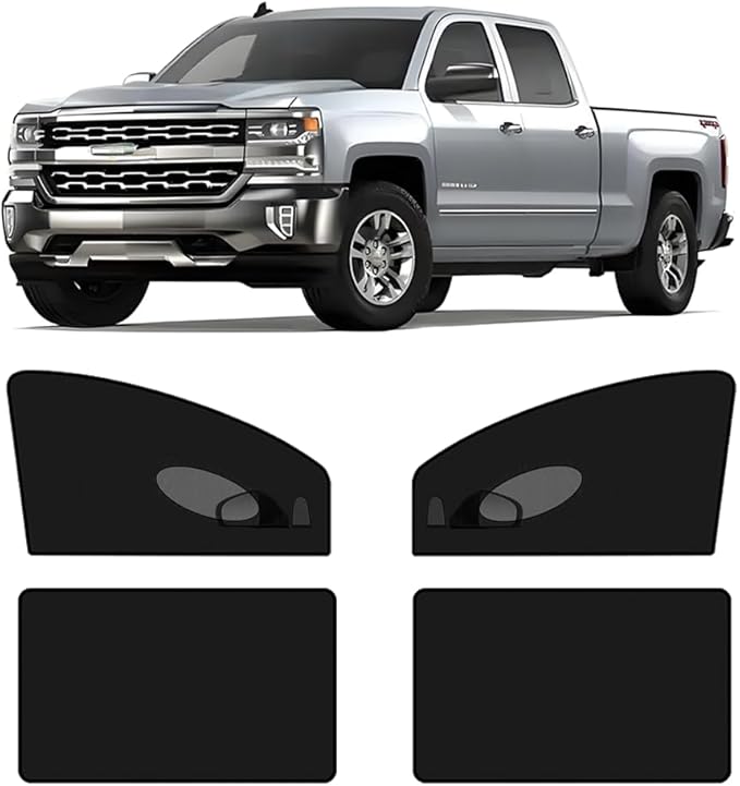 [2025] Car Window Screen for Chevrolet Silverado1500 2019-2025 Large Pickup SUV Camping 4 Pcs Car Window Shades Bug Mosquito Net,Breathable Mesh Netting UV Protector for Front and Rear Side Window