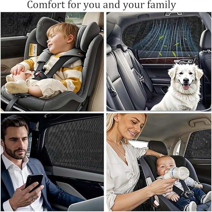 - WHAT YOU WILL GET: 4 Pcs side window screen shade for FRONT and BACK SEAT; Worry-free 12-month warranty, and friendly customer service.