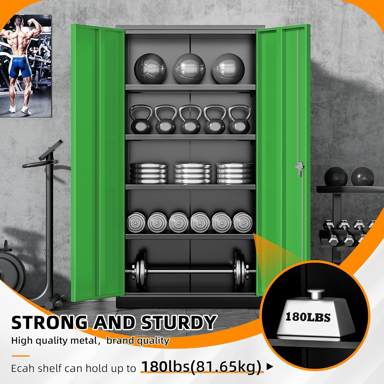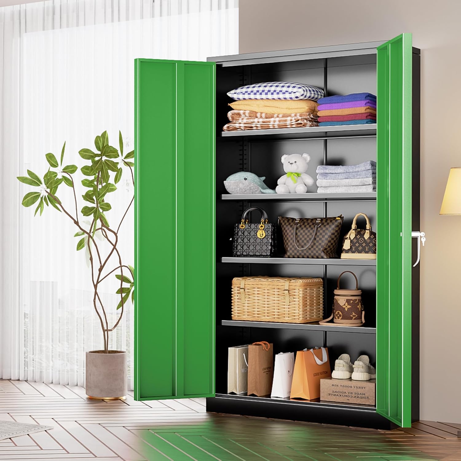 INTERGREAT Storage Cabinet, 72” Steel Locking Closet with Doors and 4 Adjustable Shelves, Tool Unit for Home Office, Garage & Tall Lockable File Cabinet, Black Green.
