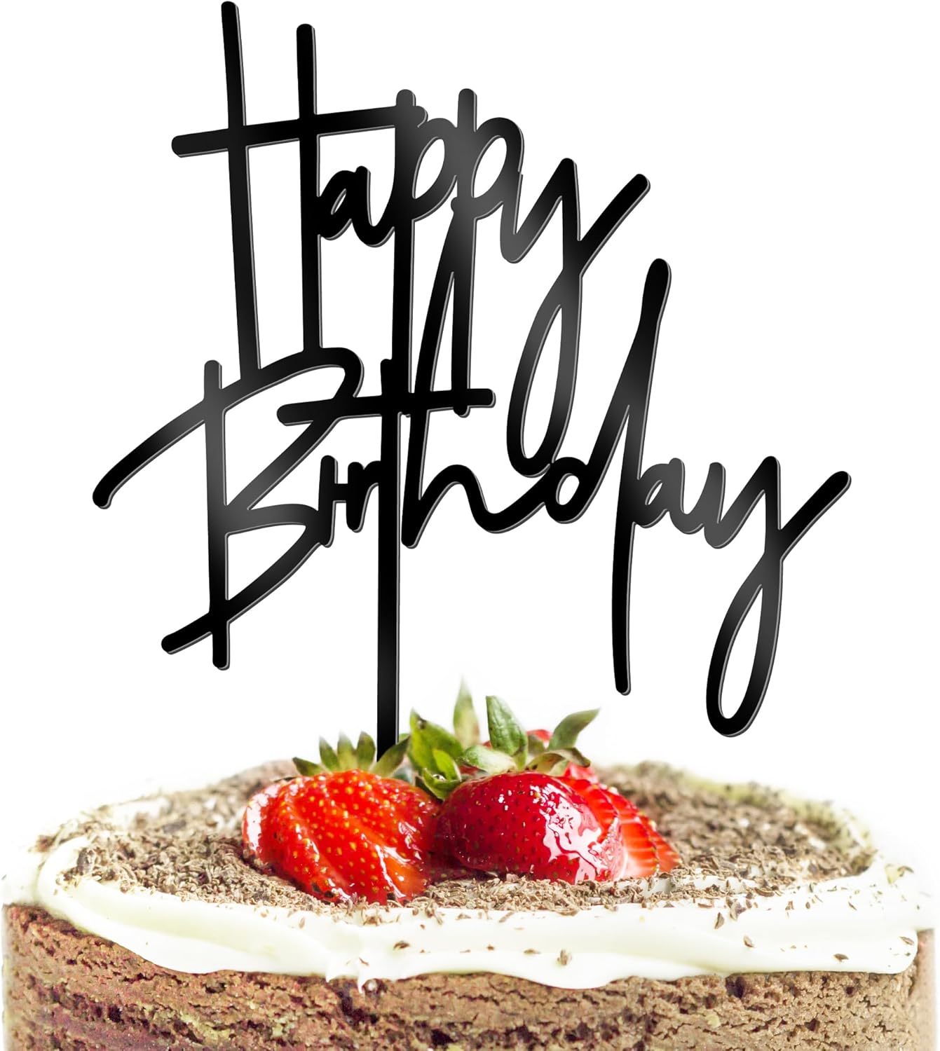 1 PCS Black Happy Birthday Cake Topper, 5.3 Inch x 7.2 Inch Acrylic Cake Topper Happy Birthday Cake Sign, Birthday Cake Decorations for Party Dessert, and Anniversary Supplies