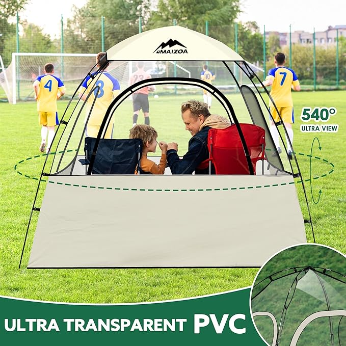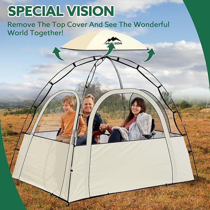 Sports Tent, 2-3 Person Outdoor Tent, 540° Transparent View,Waterproof/Coldproof, with Removable Top Cover, for Watching Sporting Events, Camping, Outdoor Activities (Khaki&Black) (Khaki)
