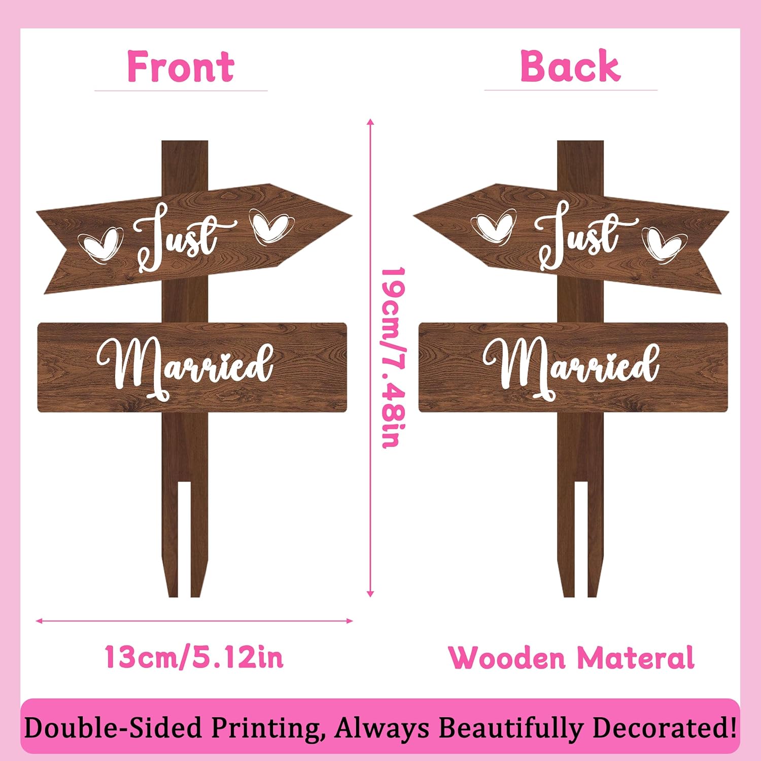 Just Married Cake Topper Rustic Wedding Cake Topper Double-Sided Wood Cake Toppers 7.48'' x 5.12'' Wedding Cake Decoration