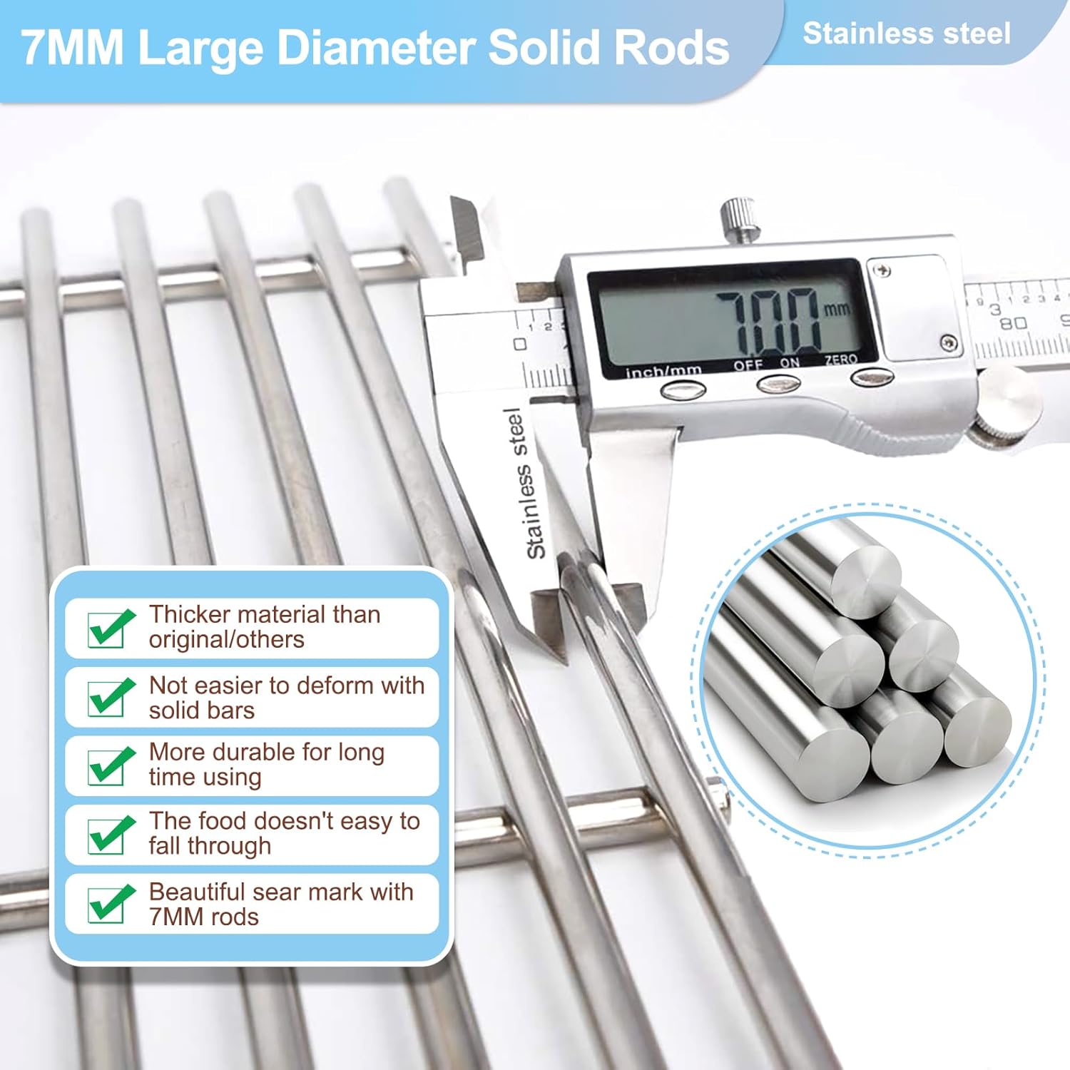 - Grill Grate Dimensions: 19 1/8" x 12 15/16" for each, 19 1/8" x 25 7/8", Material: 7mm Stainless Steel; Heat Plate Dimensions: 17 3/4” x 6 3/8" ,Heat Shield Material: Stainless Steel