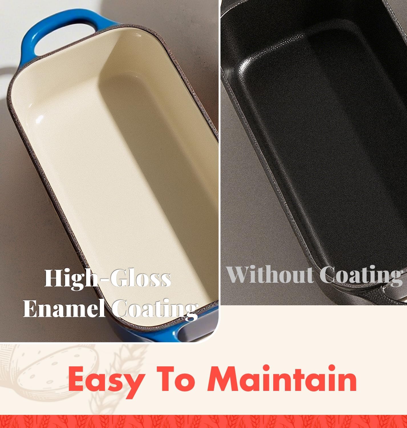 - 【Premium Loaf Pan】Made from high-quality cast iron, classic blue enamel coating, our bread oven is built to last. Oven Safe up to 500°F, no need to worry about deformation or harmful coating peeling off. Our dutch oven pan is suitable for all cooktops, including induction, oven and broil