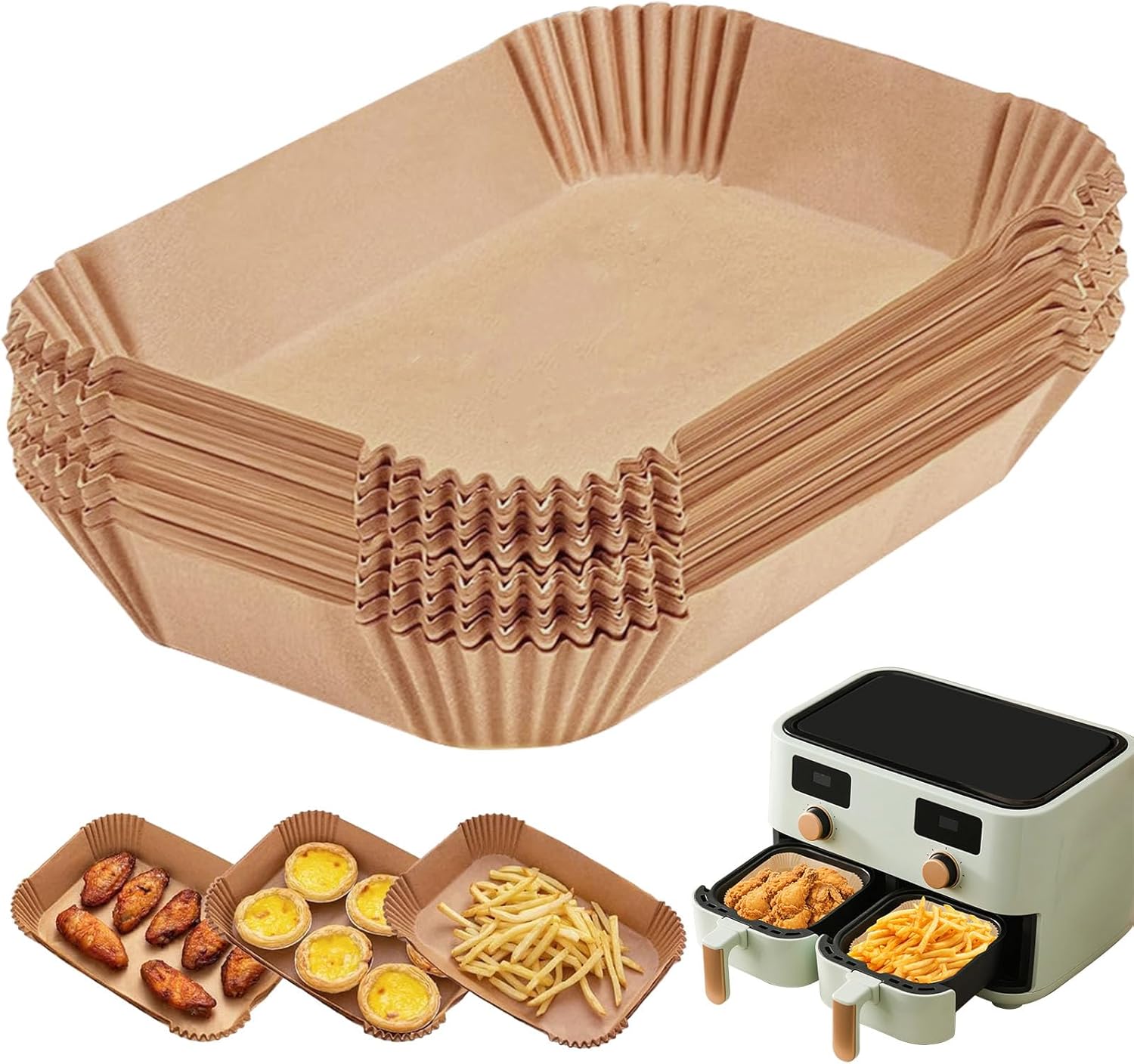 150 Pack 8.6x5.5" Air Fryer Liners, Parchment Paper Sheets For Ninja DZ201/DZ401 Dual Basket, Non-Stick, Disposable, Unbleached, Heat Resistant, Fits 3-6 QT Air Fryers, Oil-Free & Healthy Cooking.