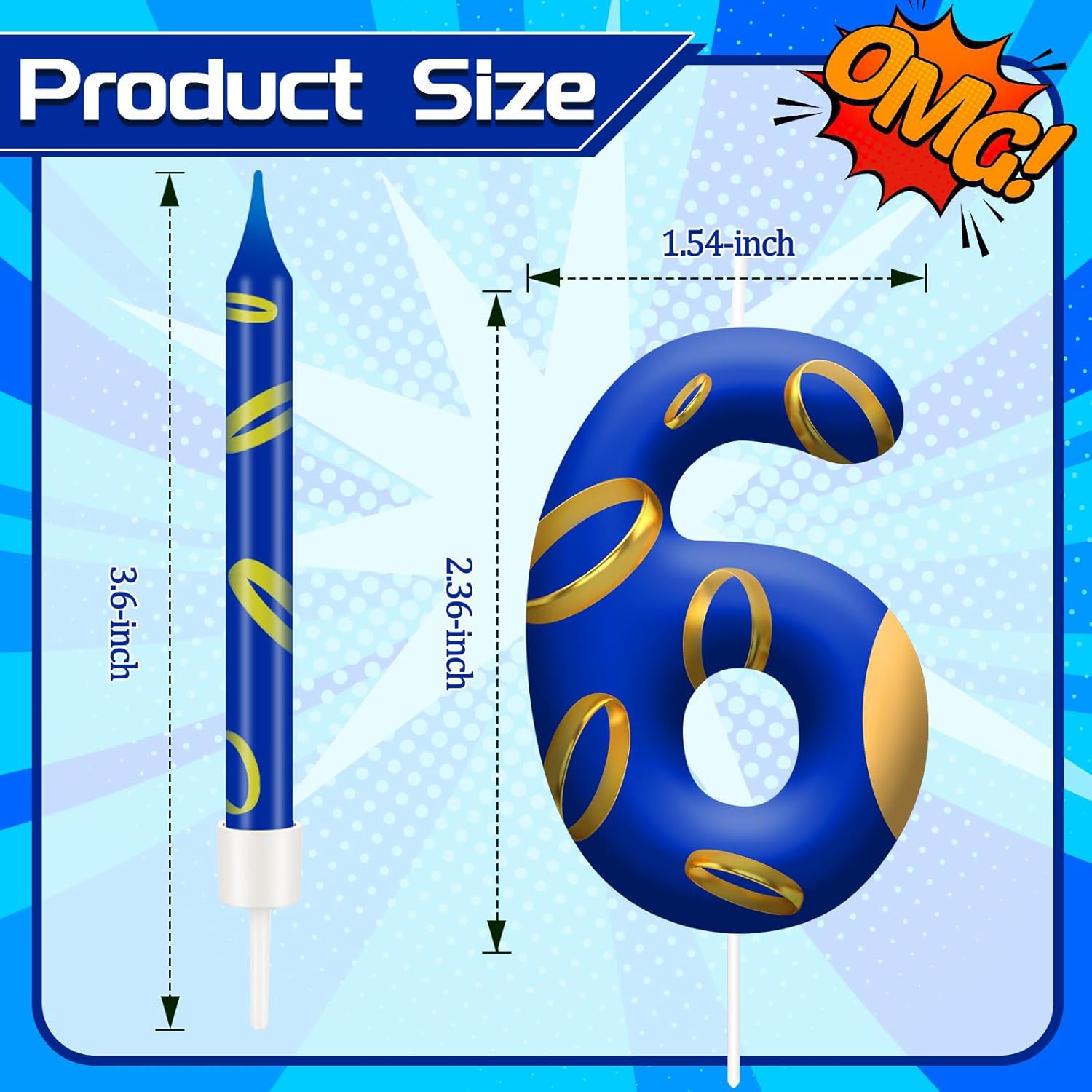 13PCS Birthday Cake Candles Set - Blue and Golden Ring Number Candles with Vibrant Designs for Boys & Girls, Theme Birthday Party Decorations, Cake Toppers for Theme Parties(Number 6)