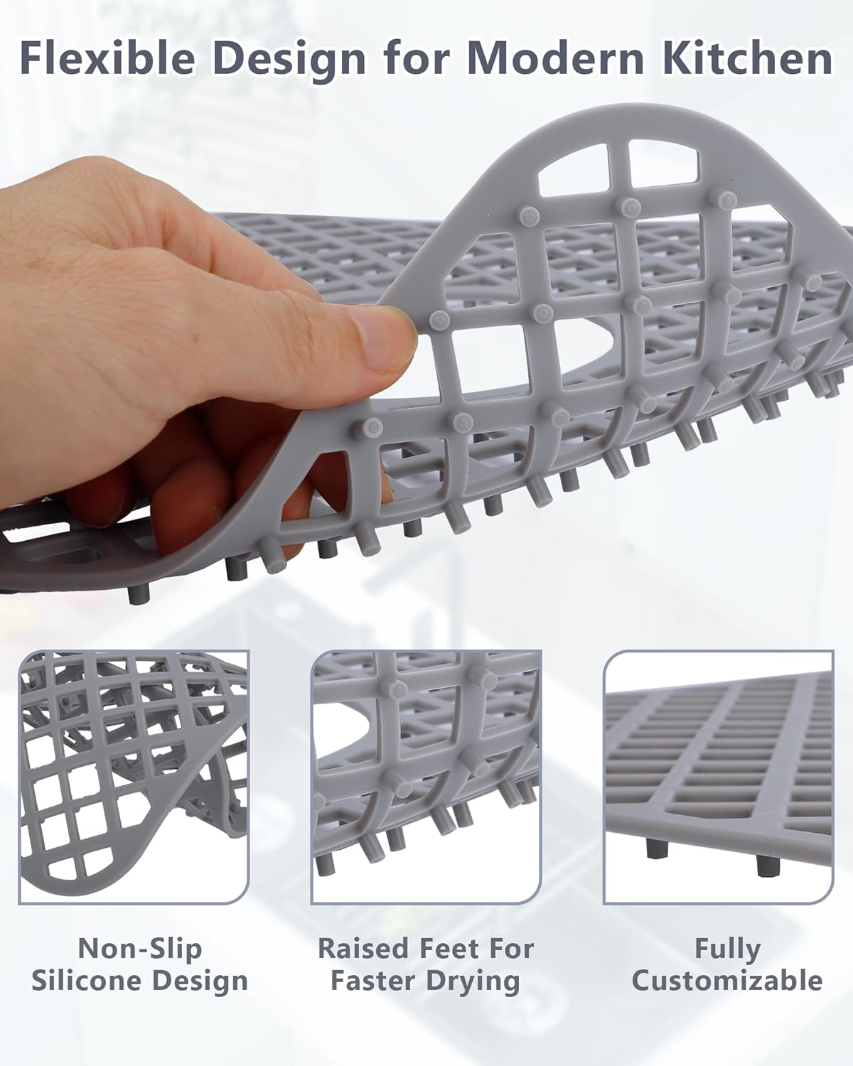 - Gentle Yet Secure Surface - Engineered with a unique soft-yet-strong design that prevents chips in glassware while supporting heavy ceramics. The textured surface cushions items while the grippy underside prevents slips - even when wet. Flexible material conforms perfectly to your sink's shape, creating the ultimate stable workspace for all kitchen tasks.