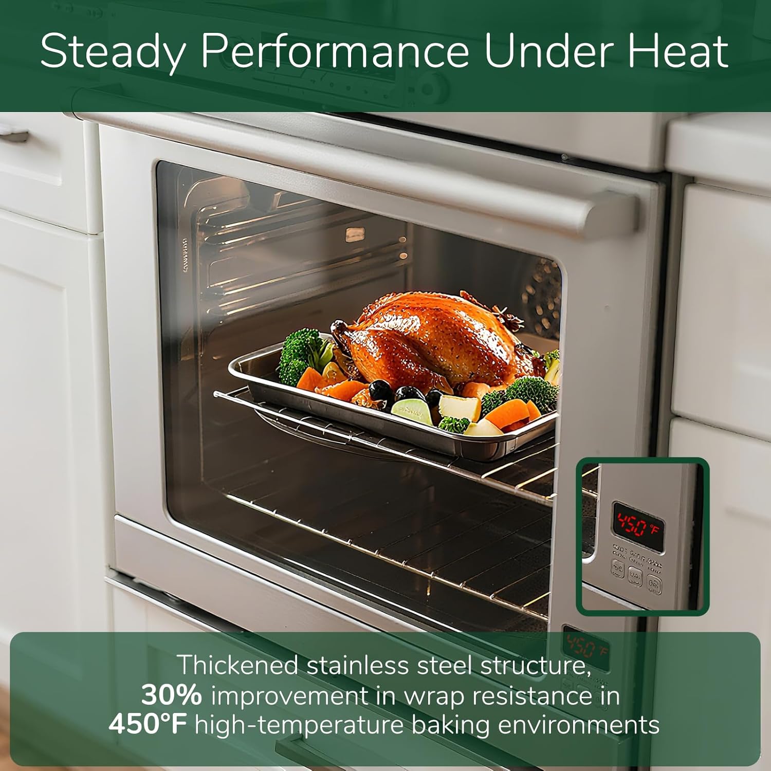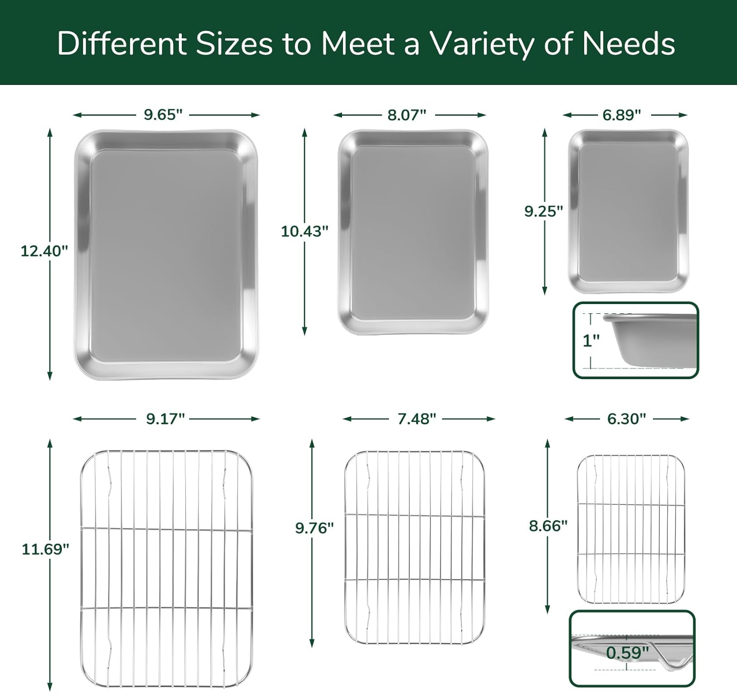 18/0 Stainless Steel Baking Sheet with Cooling Rack, Oven-Safe Non-Toxic Cookie Sheets for Baking, Set of 6, Coating Free & Rust Resistant for Healthy Family Baking, Easy to Clean, Heavy-Duty