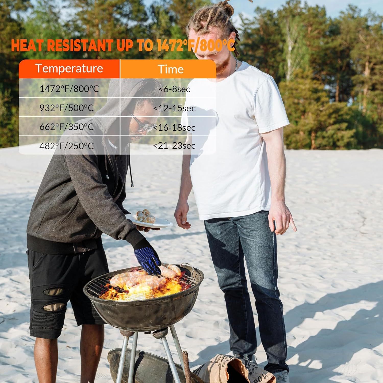 - 1472°F Heat Resistant: This grilling gloves provides high heat resistant up to 1472°F, providing perfect protection for your hands from high temperatures when your are grilling, baking, or cooking.