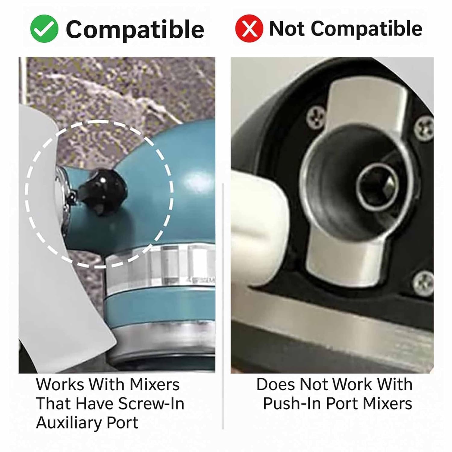 - Compatible With KitchenAid Tilt-Head Mixers: Specifically designed for KitchenAid Artisan KSM150 and other 4.5–5Qt tilt-head stand mixers, this funnel locks securely in place. It ensures ingredients go straight into the bowl, allowing you to keep mixing without interruption or unwanted mess